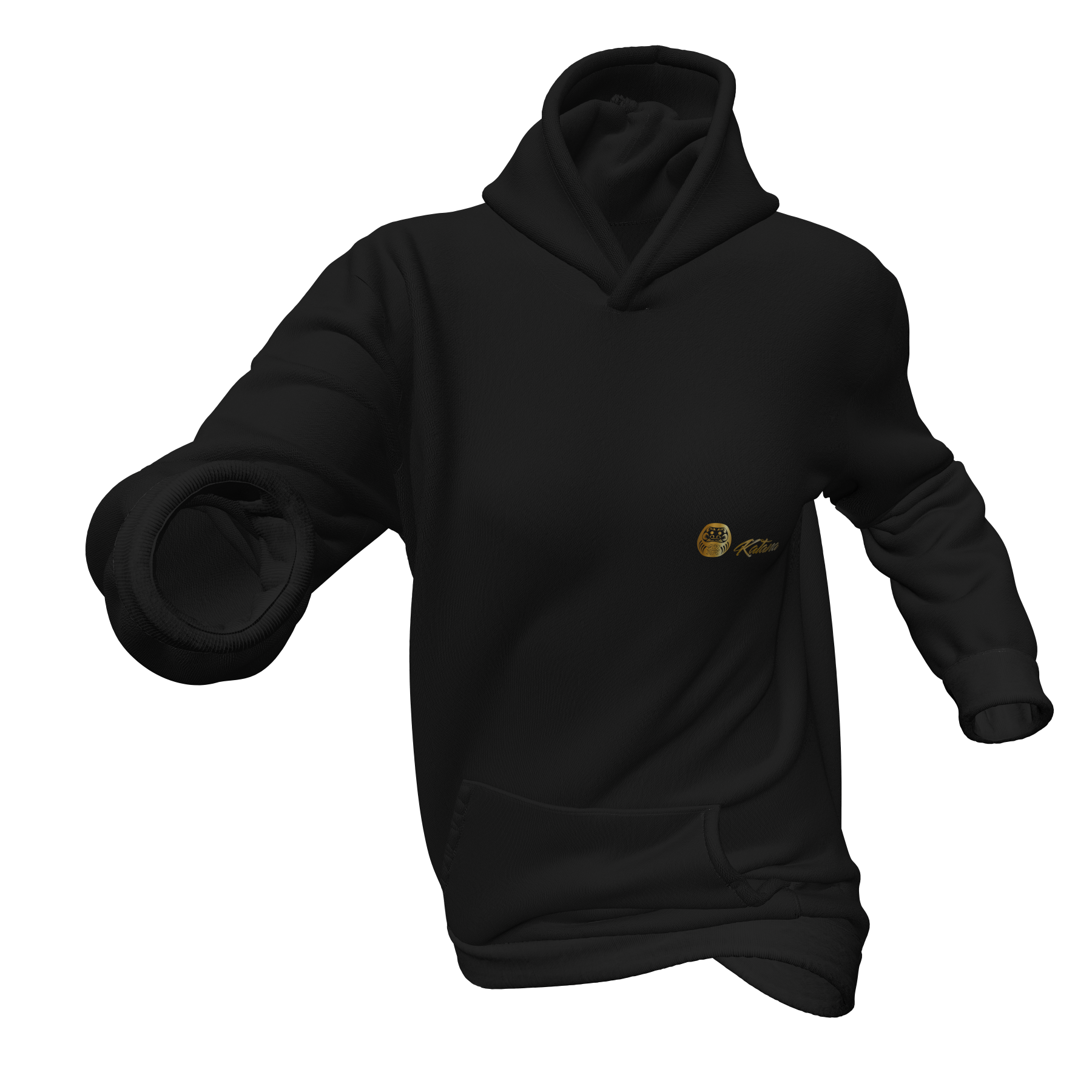 Hoodie deportiva cerrada con estampado Katana y con capucha de grosor escala media, bolsillo frontal en doble capa y resortes estándar en brazos y cintura.