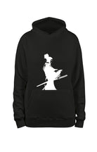 Hoodie deportiva cerrada con estampado de nuestrx emblemáticx samurai, con capucha de grosor escala media, bolsillo frontal en doble capa y resortes estándar en brazos y cintura.