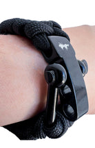 Pulsera de supervivencia hecha con cuerda de paracaídas y grillete de acero para momentos extremos o emergencias. Hecha de 500 cuerdas, soga de trampa, líneas de pesca y yute encerado.