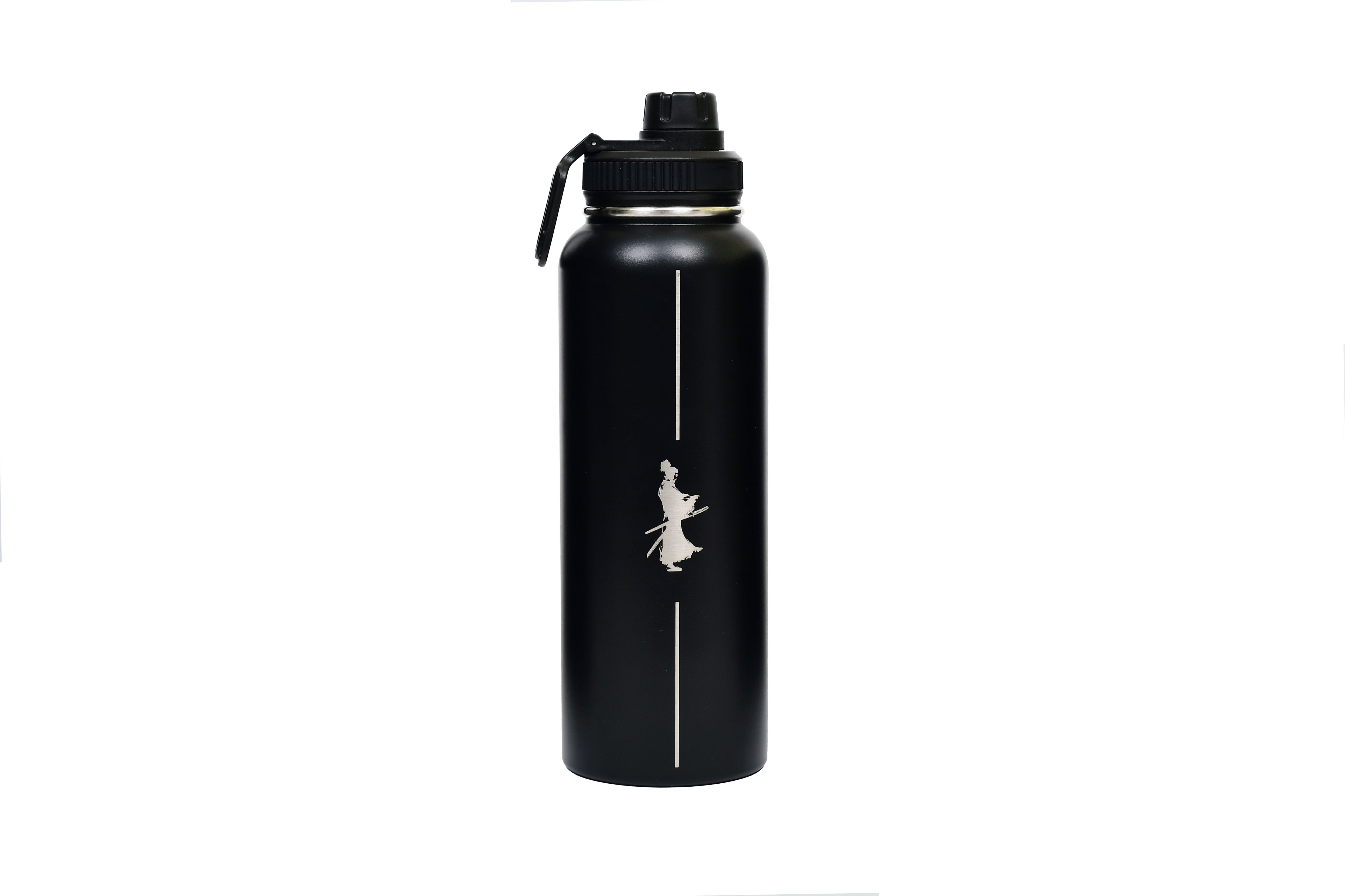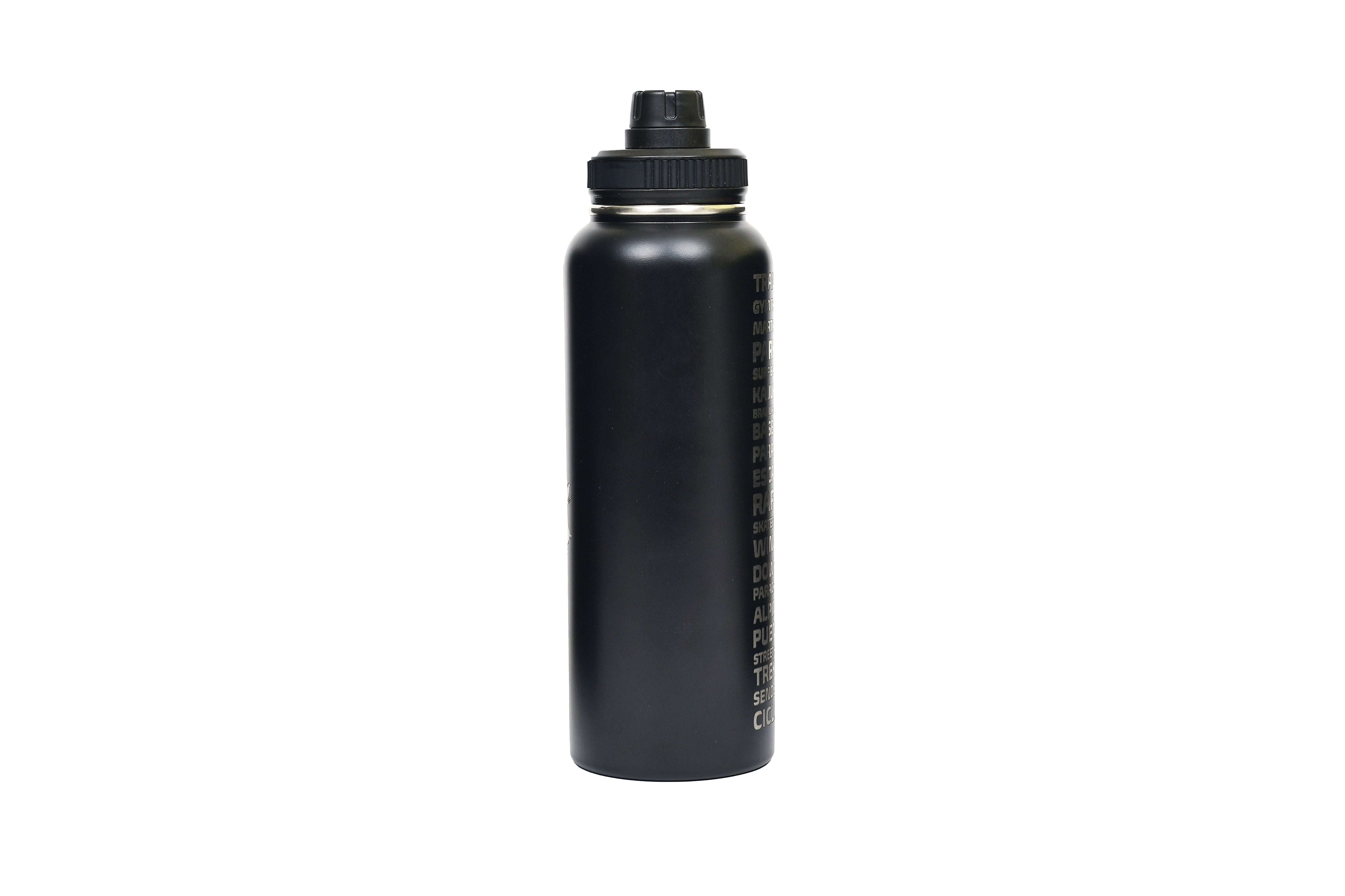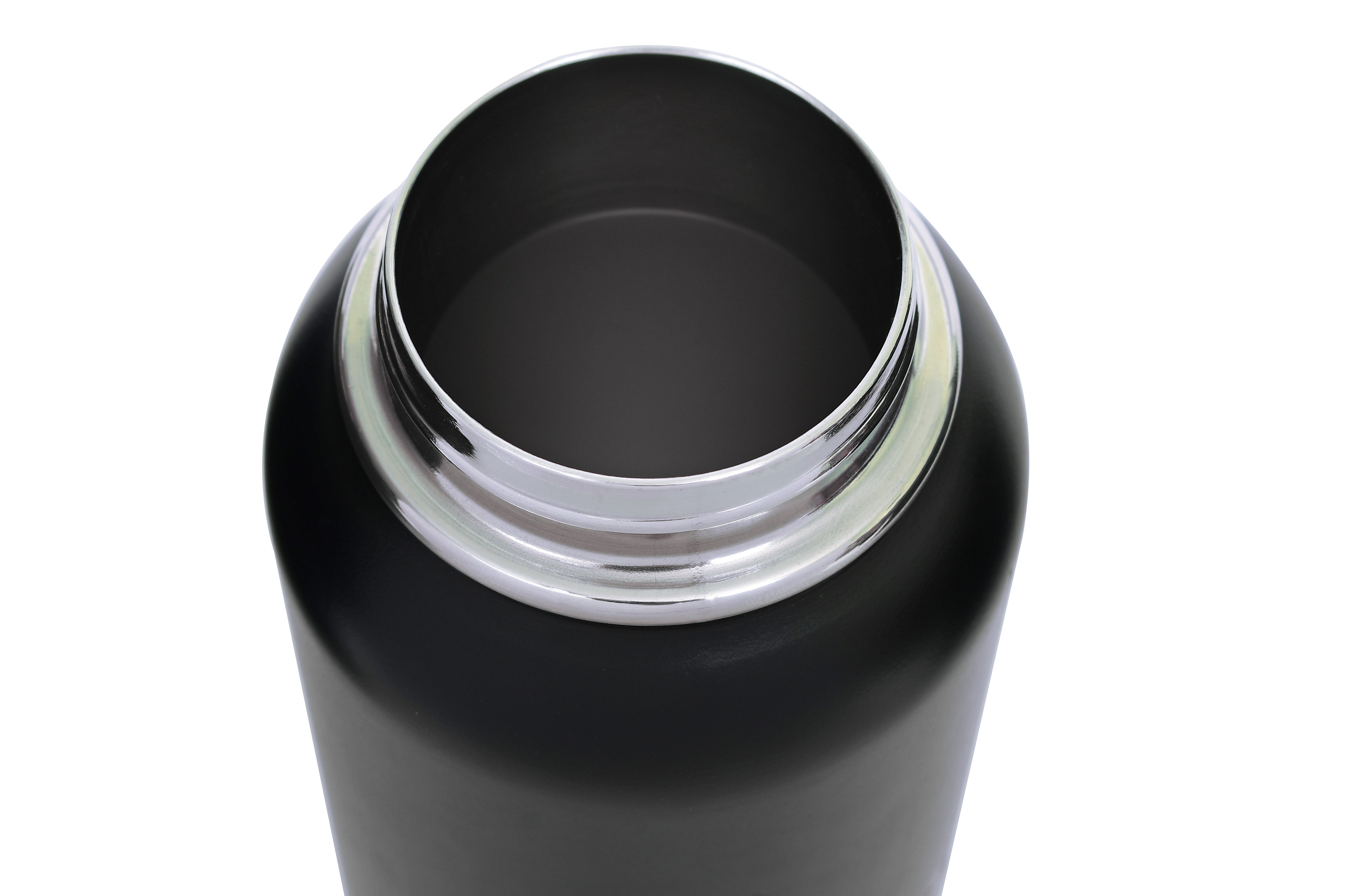 Termo negro de acero inoxidable con una capacidad de 1100 ml. Duradero y resiste la posibilidad de abolladuras